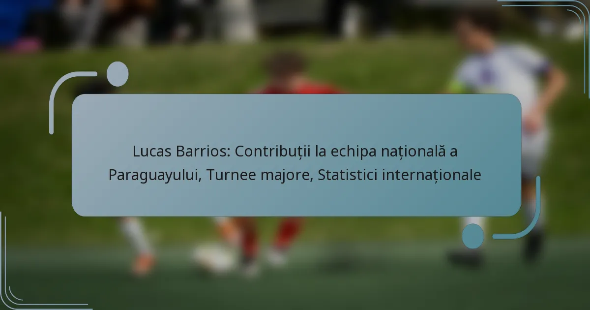 Lucas Barrios a fost un contributor esențial pentru echipa națională a Paraguayului, excelând ca atacant și lider pe teren. Participarea sa la turnee majore, inclusiv la multiple competiții Copa América și calificările pentru Cupa Mondială FIFA, subliniază importanța sa în realizările echipei și evidențiază statisticile sale internaționale impresionante.